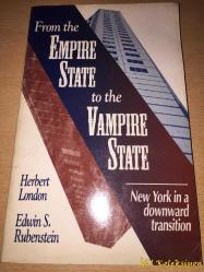 From The Empire State To The Vampire State - New York in a Downward Transition - Herbert London & Edwin S. Rubenstein - University Press of America - İngilizce Kitap (Empire State'ten Vampire State'e - Aşağıya Doğru Bir Geçişte New York), Herbert London & Edwin S. Rubenstein tarafından kaleme alınmıştır. Eser - editörlüğünde hazırlanmıştır. Kitap 1994 yılında University Press of America tarafından [Lanham] yayınlanmıştır. Bu baskının çevirisi - tarafından yapılmıştır. 190 sayfadır. From The Empire State To The Vampire State - New York in a Downward Transition - Herbert London & Edwin S. Rubenstein - University Press of America - İngilizce Kitap (Empire State'ten Vampire State'e - Aşağıya Doğru Bir Geçişte New York) adlı eser İngilizce dilindedir.