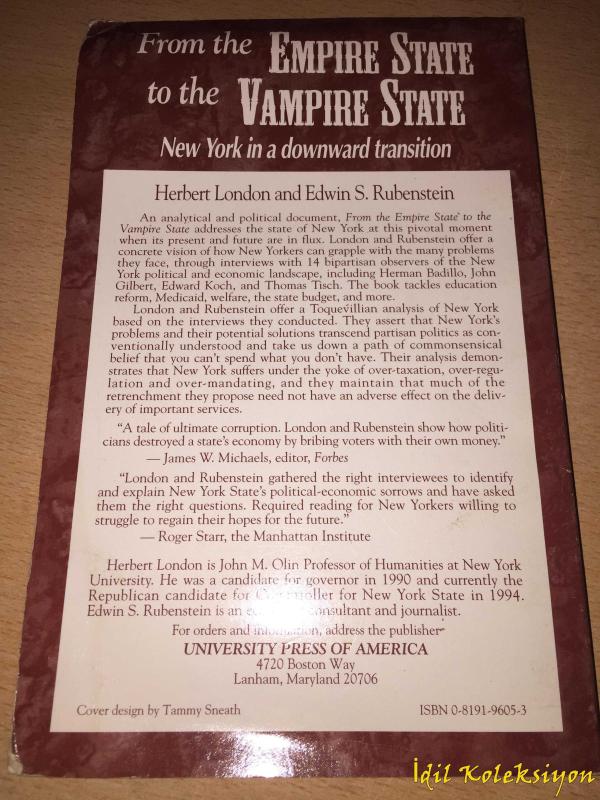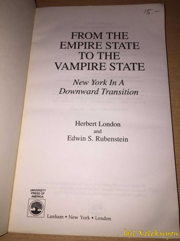 From The Empire State To The Vampire State - New York in a Downward Transition - Herbert London & Edwin S. Rubenstein - University Press of America - İngilizce Kitap (Empire State'ten Vampire State'e - Aşağıya Doğru Bir Geçişte New York) adlı eser, Kitap > Özel İlgi Alanları kategorisinde İkinci El olarak satıştadır.