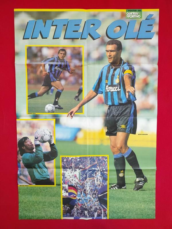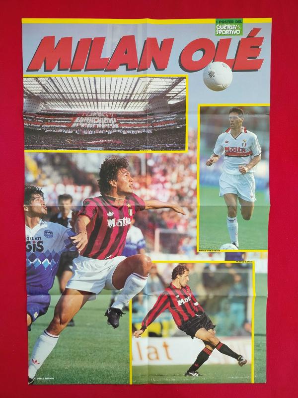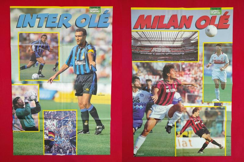 Futbol Poster - Serie A İtalya Ligi AC Milan Maldini, Baresi, Van Basten, İnter Zenga, Bergomi, Sosa, Çift Taraflı - Guerin Sportivo Spor Dergisi - 81x54 cm