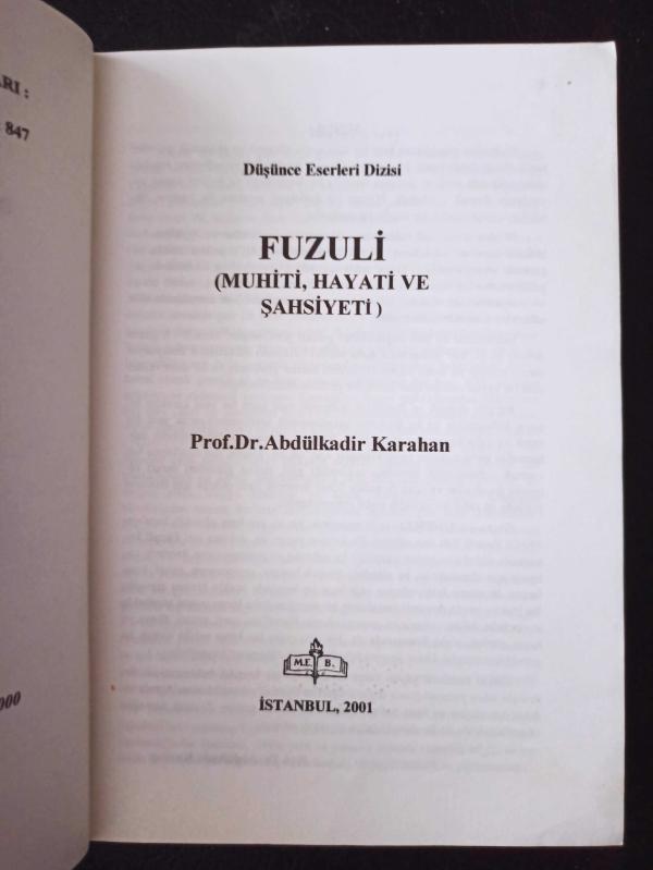 Fuzulî Muhiti, Hayatı Ve Şahsiyeti - Türkçe Kitap - Prof. Dr. Abdülkadir Karahan - Düşence Eserleri Dizisi -