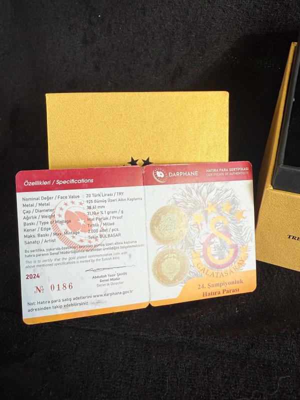 GALATASARAY 2023-2024 24. Şampiyonluk Hatıra Parası Darphane Sertifikalı Gümüş Üzeri Altın Kaplama (Özel Kutusunda)