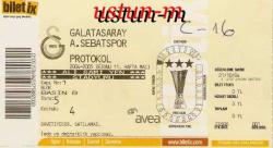 ** GALATASARAY - A.SEBATSPOR ESKİ MAÇ BİLETİ ** Çok temiz durumda,Atatürk Olimpiyat Stadyumu Protokol, 2004 - 2005 sezonu 11.Hafta maç bileti... Maçı Galatasaray Ümit Karan ve Orhan Ak'ın golleriyle 2-0 kazanmıştır...