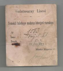 GALATASARAY LİSESİ YEMEKLİ TALEBEYE MAHSUS HÜVİYET VARAKASI...