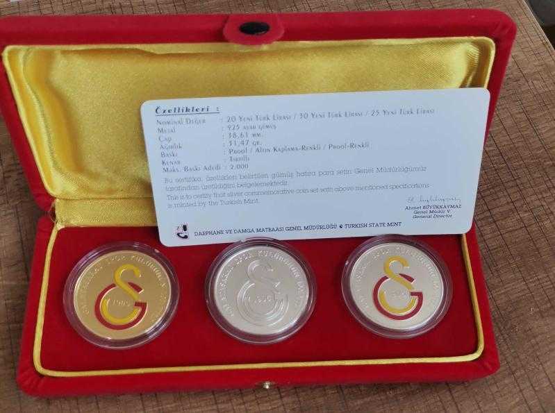 GALATASARAY SPOR KULUBÜ 100.YIL HATIRA PARA SETİ (2005) SATIŞ ADEDİ :1134 G.S. MİNESİZ 925 AYAR GÜMÜŞ G.S. MİNELİ 925 AYAR GÜMÜŞ G.S. MİNELİ ALTIN KAPLAMA