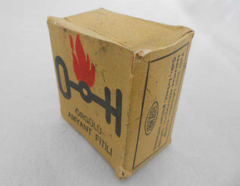 GAZ SOBASI FİTİLİ HOO MARKA AMYANT KUTUSUNDA başlıklı antika/koleksiyon objesi Türkiye menşe’lidir. 1960-1979 arası dönemine aittir.