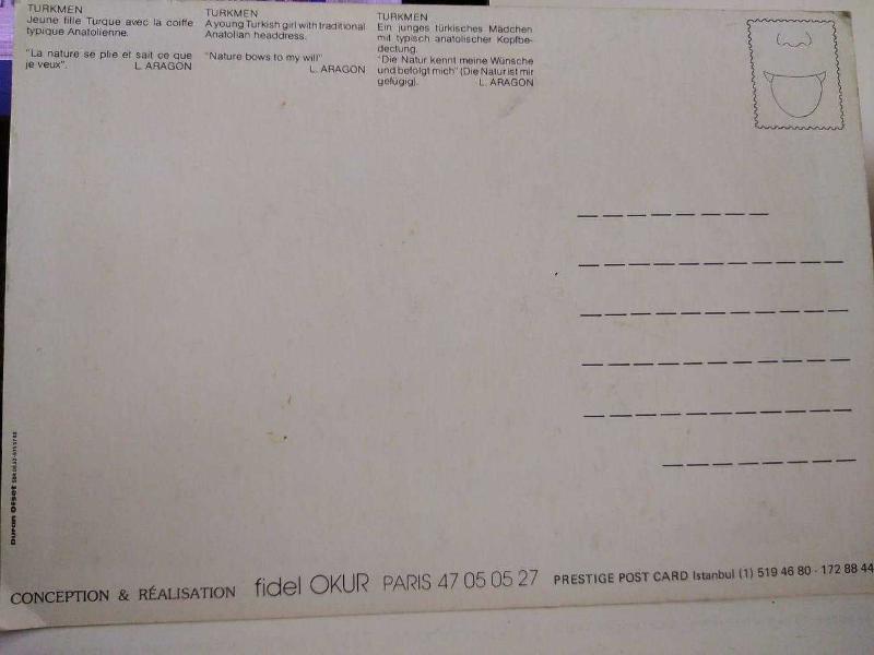 GELENEKSEL KIYAFETLER GİYMİŞ TÜRKMEN KIZ ÇOCUĞU KARTPOSTALI,ARKASINA YAZILMAMIŞ,RENKLİ, 12 X 17 CM EBADINDA, 1 yıl önce satışa sunulmuştur.