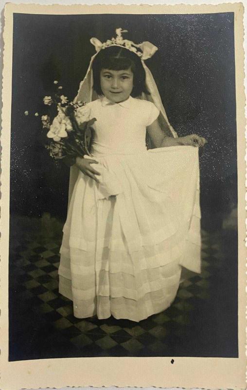 GELİNLİK GİYİP ELİNDE ÇİÇEK TUTAN 5-6 YAŞLARINDA KIZ ÇOCUĞU FOTOĞRAFI, FOTO GÜNEŞ, ŞABAN GÖKSOY - ORİJİNAL SİYAH & BEYAZ, 13X 8cm EBADINDA - 1940'LAR, 1950'LER, 1960'LAR ve 1970'LER TÜRKİYE'SİNDEN NOSTALJİK DOĞUM GÜNÜ HEDİYESİ, en son 1 yıl önce güncellenmiştir.