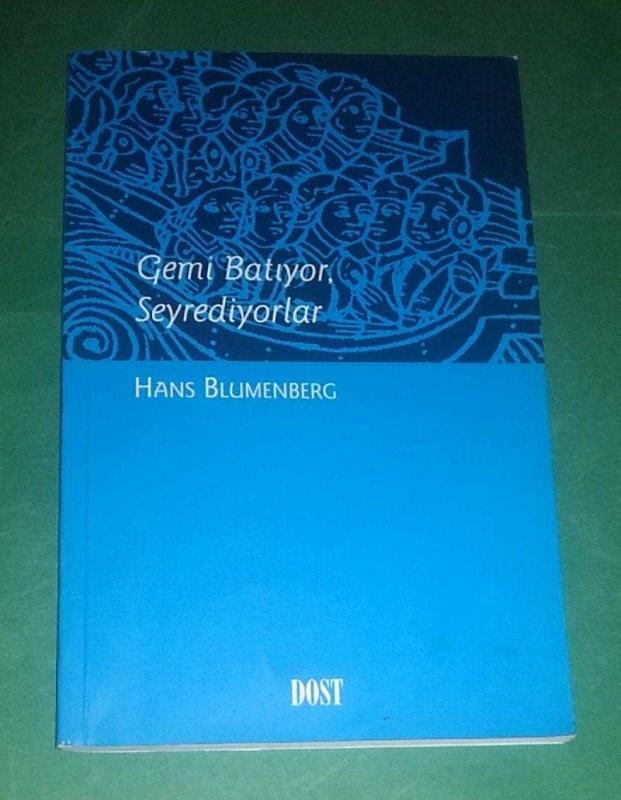 GEMİ BATIYOR, SEYREDİYORLAR, Hans Blumenberg tarafından kaleme alınmıştır. Kitap 2002 yılında Dost Kitabevi tarafından [Ankara] 9789752980136 ISBN kodu ile yayınlanmıştır. Bu baskının çevirisi Osman Toklu tarafından yapılmıştır. 98 sayfadır. GEMİ BATIYOR, SEYREDİYORLAR adlı eser Türkçe dilindedir.