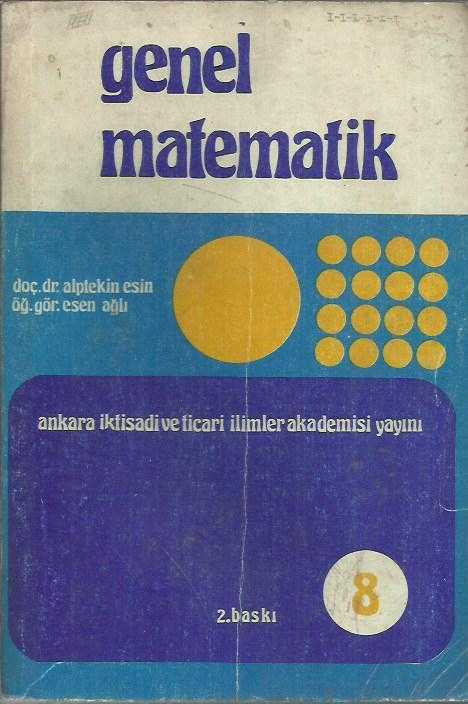 GENEL MATEMATİK, ALPTEKİN ESİN & ESEN AĞLI tarafından kaleme alınmıştır. Kitap 1978 yılında ANKARA İKTİSADİ VE TİCARİ İLİMLER AKADEM tarafından [ANKARA] yayınlanmıştır. 394 sayfadır. GENEL MATEMATİK adlı eser Türkçe dilindedir.