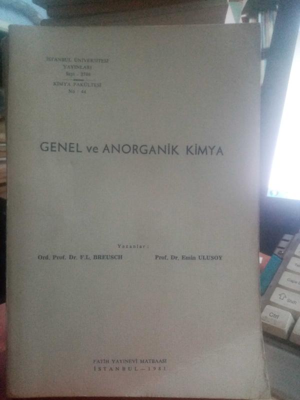 GENEL VE ANORGANİK KİMYA 2.EL, F. L. BREUSCH & EMİN ULUSOY tarafından kaleme alınmıştır. Kitap 1981 yılında FATİH YAYINEVİ MATBAASI tarafından [İST.] yayınlanmıştır. 350 sayfadır. GENEL VE ANORGANİK KİMYA 2.EL adlı eser Türkçe dilindedir.