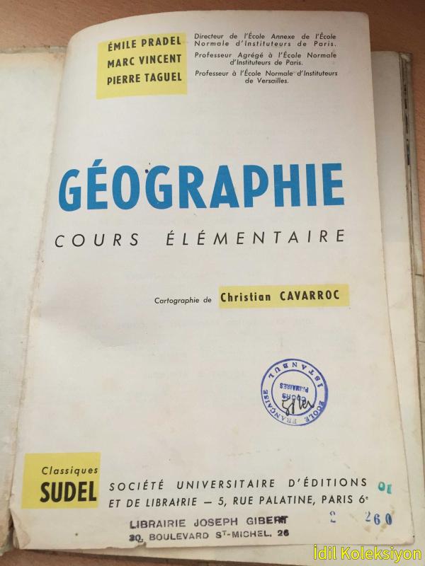 GEOGRAPHİE : Cours Elementaire - Emile Pradel , Marc Vincent , Pierre Taguel - Societe Universitaire D'Editions et De Librairie - Fransızca Kitap (COĞRAFYA: İlköğretim Dersi) Hafif Yıpranma ve Lekelenmeler Mevcut