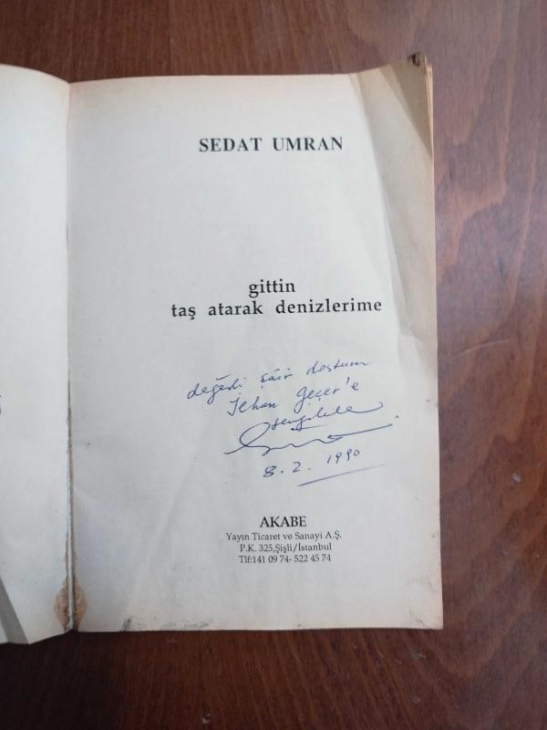GİTTİN TAŞ ATARAK DENİZLERİME (ŞAİR İLHAN GEÇER'E İMZALI), Sedat UMRAN tarafından kaleme alınmıştır. Kitap 1990 yılında Akabe Yayınları tarafından [İstanbul] yayınlanmıştır. 80 sayfadır. GİTTİN TAŞ ATARAK DENİZLERİME (ŞAİR İLHAN GEÇER'E İMZALI) adlı eser Türkçe dilindedir.