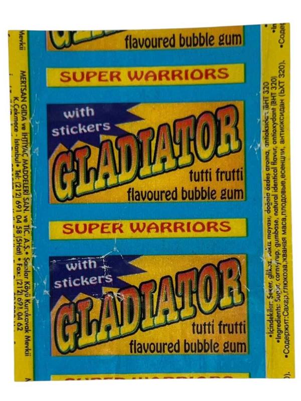 GLADIATOR - Mertsan Sakız Sarma Kağıdı Stickers SKZ1683 İmal Tarihi- 1999 Kondisyon — Çok İyi * Tüm ürünlerimiz orijinaldir.