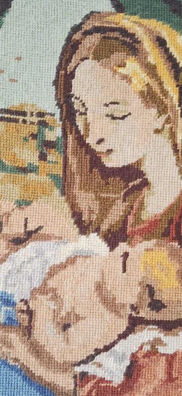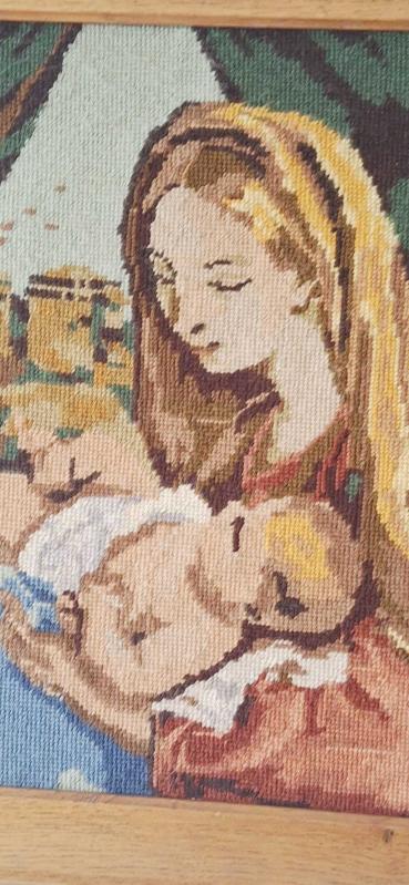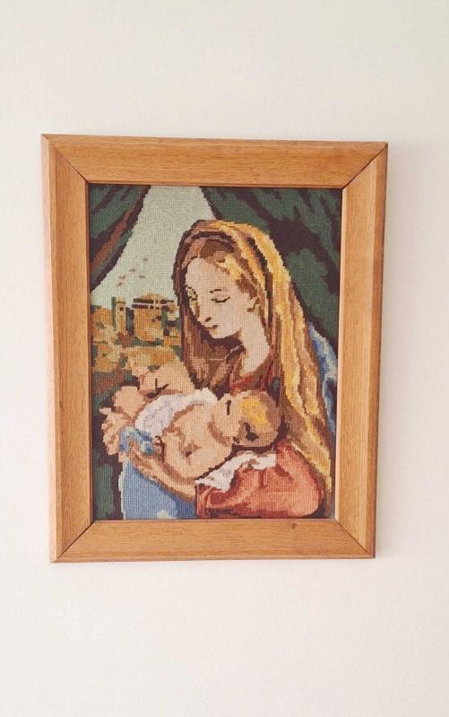 Fransız Üretim Vintage Goblen – Carlo Maratta Referanslı yüzyıl İtalyan ressamı Carlo Maratta’nın (1625–1713) eserinden uyarlama, Made in France etiketli 1965 vintage goblen çalışma. Anne ve çocuk temasını barok dönem estetiğiyle yansıtan, zamansız bir Avrupa yorumu. Masif ahşap çerçeveli, temiz ve güçlü bir dekoratif parça. Koleksiyonluk Avrupa vintage arayanlar için özel. 55cm 43cm kusuru yoktur ama 1965 den günümüze gelmiş bir ürün olduğunu ve yorgunlukları olduğunu bilelim