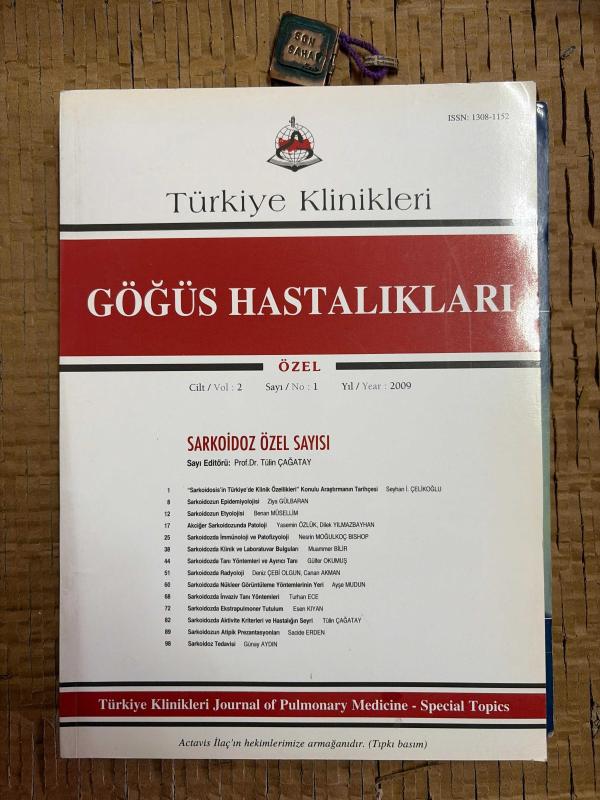 Eser Tülin Çağatay editörlüğünde hazırlanmıştır. GÖĞÜS HASTALIKLARI CİLT 2 SAYI 1 2009 - SARKOİDOZ ÖZEL SAYISI adlı eser Türkçe dilindedir.