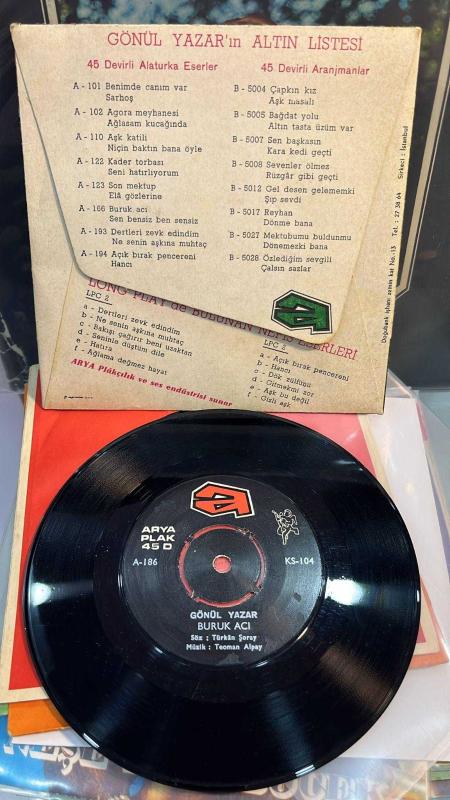 GÖNÜL YAZAR - BURUK ACI 05336 başlıklı ürün, Efemera, Müzik, Sinema > Müzik, Plak, Kaset, CD > Plak > Yerli Plaklar > Yerli 45 Devir Plak (45'lik) kategorisi altında İkinci El olarak satılmaktadır.