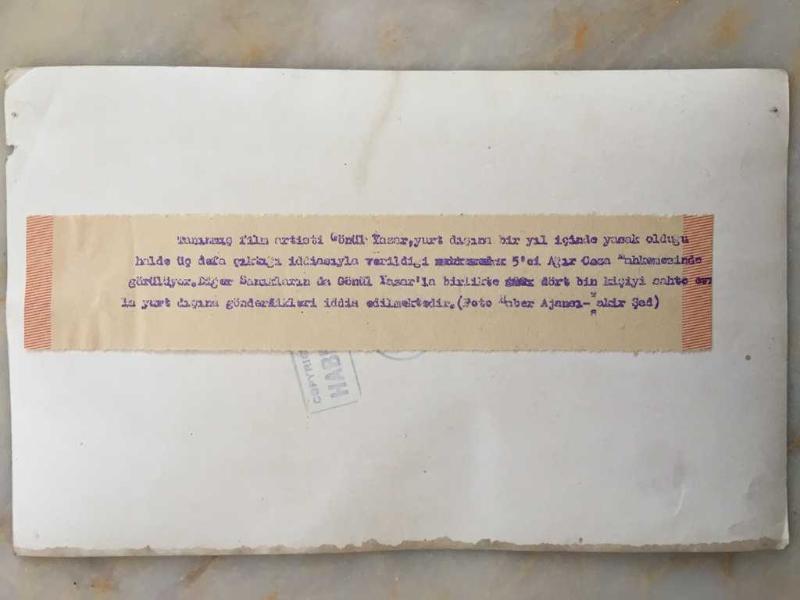 GÖNÜL YAZAR'IN ORİJİNAL BÜYÜK BOY 5'Lİ FOTOĞRAF SETİ - 24 x 18 cm ve 24 x 15 cm EBADINDA 2 ADET FOTOĞRAF - GÖNÜL YAZAR'IN YASAK OLDUĞU HALDE 1 YIL İÇİNDE ÜÇ DEFA YURT DIŞINA ÇIKTIĞI İDDİASIYLA YARGILANDIĞI MAHKEMEDE DURUŞMA ANINDA ÇEKİLMİŞ 5 FARKLI KARE (DİĞER SANIKLARIN DA GÖNÜL YAZAR'IN DA ARALARINDA OLDUĞU 4 BİN KİŞİYİ SAHTE EVRAKLARLA YURT DIŞINA GÖNDERDİKLERİ İDDİA EDİLMİŞTİR), 7 ay önce satışa sunulmuştur.