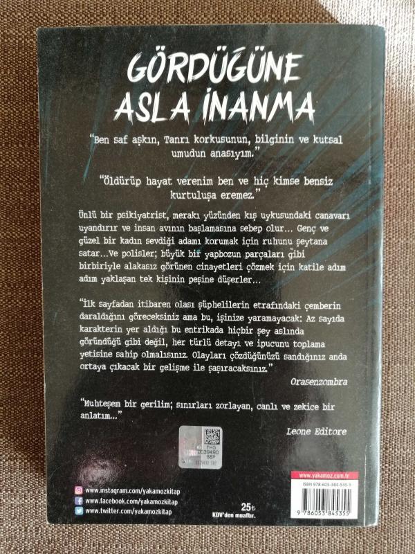 GÖRDÜĞÜNE ASLA İNANMA adlı eser, Kitap > Edebiyat, Kurgu > Polisiye, Cinai > Dünya Edebiyatı > Diğer Dünya Polisiyesi kategorisinde İkinci El olarak satıştadır.