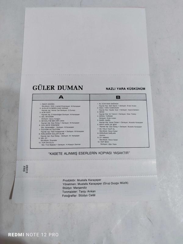 GÜLER DUMAN NAZLI YARA KÜSKÜNÜM SADECE KARTONET başlıklı ürün, Efemera, Müzik, Sinema > Müzik, Plak, Kaset, CD > Müzik Kaseti > Yerli Müzik Kaseti kategorisi altında İkinci El olarak satılmaktadır.