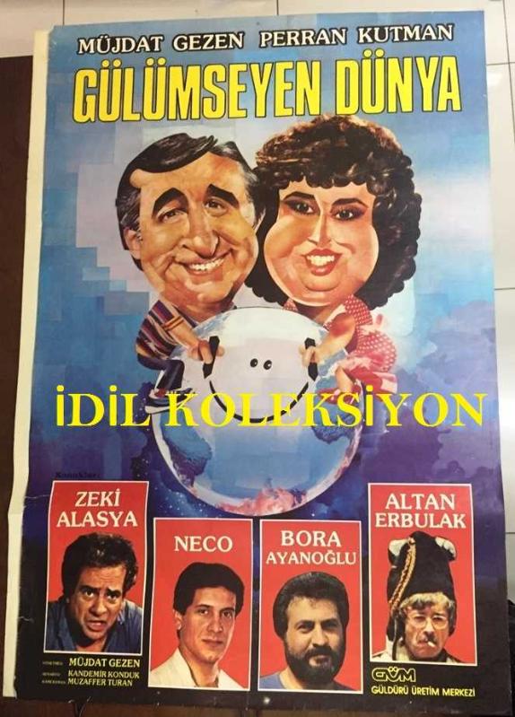 GÜLÜMSEYEN DÜNYA, 1984, FİLM AFİŞİ / POSTERİ - BÜYÜK BOY - ORİJİNAL - 100 X 68 cm EBADINDA - Original Turkish Big Size Movie Poster - Müjdat Gezen, Kandemir Konduk, Zeki Alasya, Kandemir Konduk, Bora Ayanoğlu, Altan Erbulak, Neco, Hayri Caner, Perran Kutman, Nevzat Açıkgöz, Ekrem Dümer, GÜLDÜRÜ ÜRETİM MERKEZİ, 1 yıl önce satışa sunulmuştur.