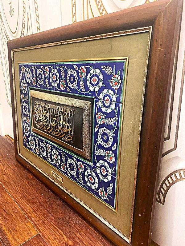 GÜMÜŞ(990 ayar)İSMAİL HAKKI ALTUNBEZER İN İZNİK ÇİNİLİ HAT ESERİ başlıklı antika/koleksiyon objesi Türkiye menşe’lidir. 1950-1999 arası dönemine aittir.