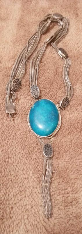 GÜMÜŞ ALPAGA SAVAT DETAYLI FİRUZE TAŞLI KOLYE UZUNLUK 38 CM DİKKAT ZİNCİR KISMI GÜMÜŞ DEĞİLDİR!!! başlıklı antika/koleksiyon objesinin menşei belirtilmemiştir. Objenin ait olduğu dönem bilinmeketedir.