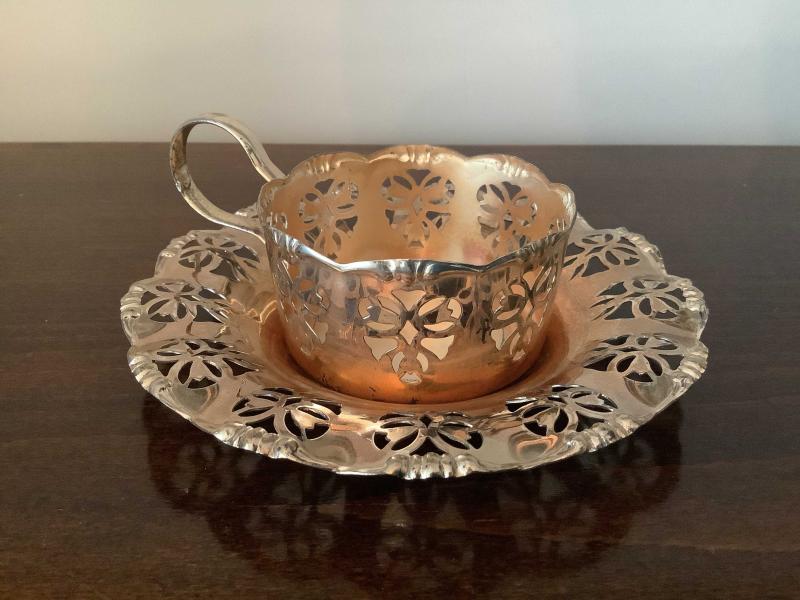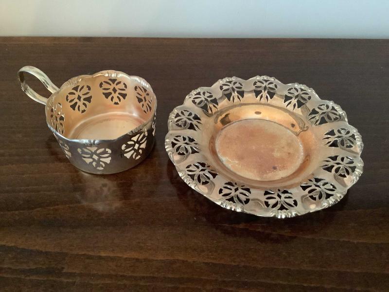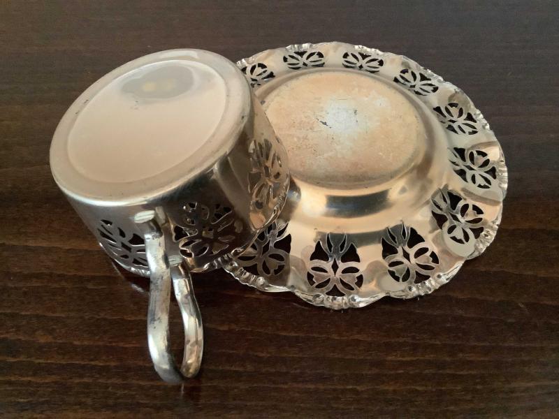 GÜMÜŞ KAPLAMA BARDAK ZARFI VE ALTLIĞI başlıklı antika/koleksiyon objesi Avrupa menşe’lidir. 1950-1999 arası dönemine aittir.