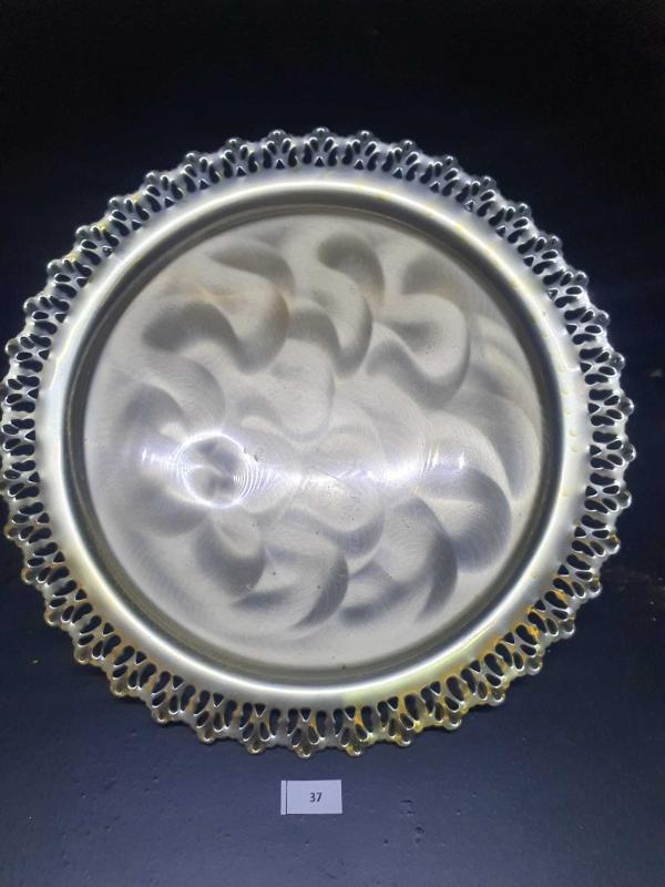 Kenarları Ajurlu dantel gümüş kaplama servis tabağı