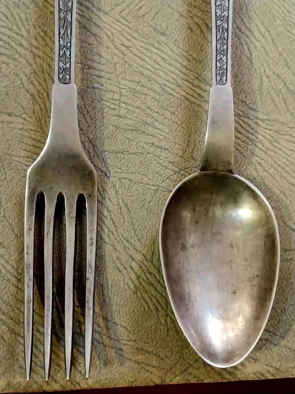 GÜMÜŞ KAŞIK ÇATAL, ORİJİNÂL KUTUSUNDA, OSMANLI DÖNEMİ USTA DAMGALI GÜMÜŞ KAŞIK ÇATAL. 135 GRAM. 19,5 cm. İADE GARANTİLİ.