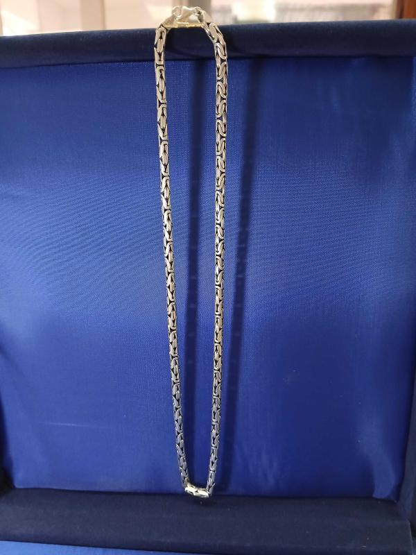 GÜMÜŞ KRAL KOLYE, OVAL KESİM, MÜKEMMEL BİR İŞÇİLİK. * 2 MM KALINLIK * 47 CM UZUNLUK * 925 AYAR GÜMÜŞ. * 32 GR.