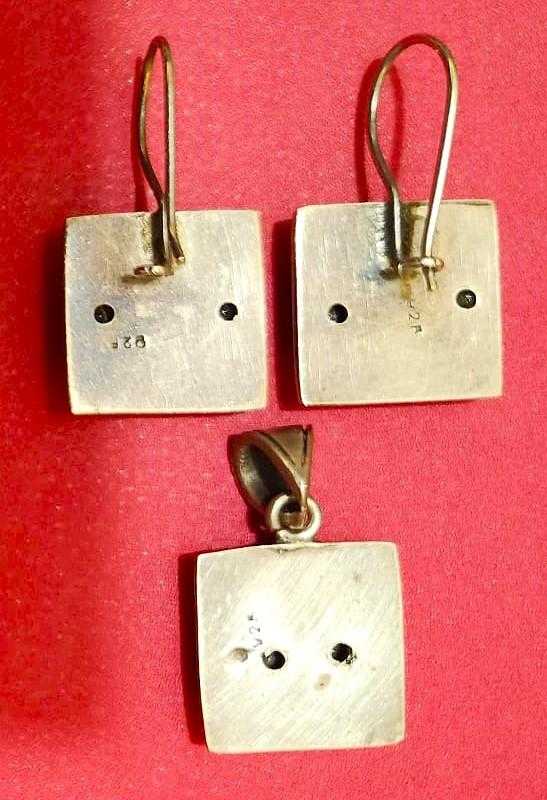 GÜMÜŞ KÜPE VE KOLYE UCU SETİ-ONYX TAŞLI 925 AYAR 19 gr. başlıklı antika/koleksiyon objesi Türkiye menşe’lidir. Objenin ait olduğu dönem bilinmeketedir.