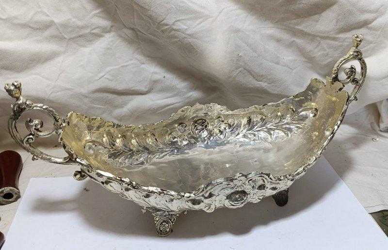 GÜMÜŞ RENGİ KAPLAMA PİRİNÇ GONDOL TABAK başlıklı ürün, Antika-Koleksiyon, Hobi-Sanat > Antika > Antika Metal Objeler > Pirinç kategorisinde İkinci El olarak satışa sunulmuştur.