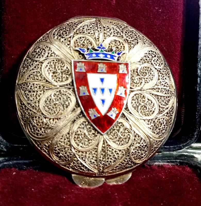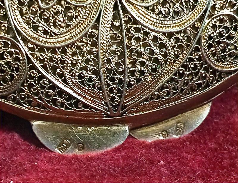 GÜMÜŞ TELKARİ İŞÇİLİKLİ AİT OLDUĞU DÜK'LÜĞÜN MİNELİ TAÇ SİMGESİNİ TAŞIYAN PUDRİYER 66,97 GR ÇAP 6 CM başlıklı antika/koleksiyon objesinin menşei belirtilmemiştir. Objenin ait olduğu dönem bilinmeketedir.