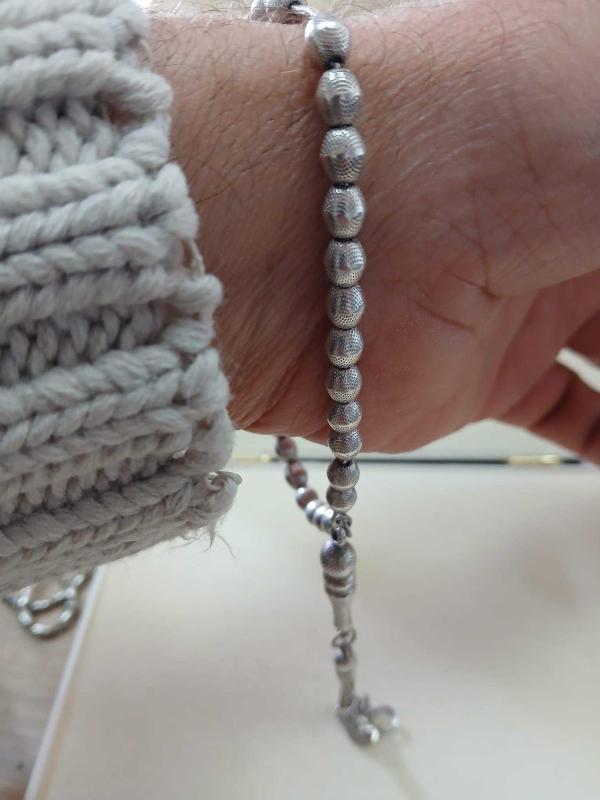GÜMÜŞ TESBİH, BİLEKBOY, FARKLI KESİM 13 GR. ( +-1GR) 21,50 CM 6mm*4mm ÖLÇÜ