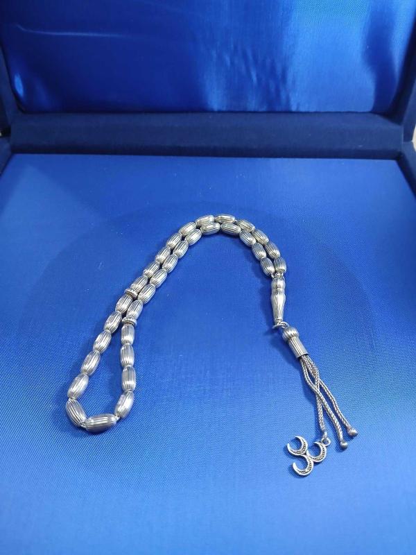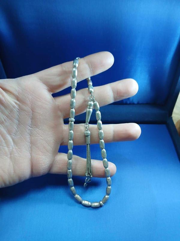 GÜMÜŞ TESBİH, BÜYÜK BİLEK BOY 27 CM BOY, 5mm*8mm ÖLÇÜ 20,70 GR. ( +-1 GR )
