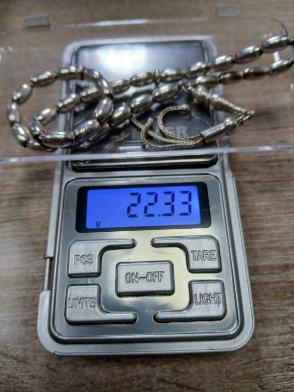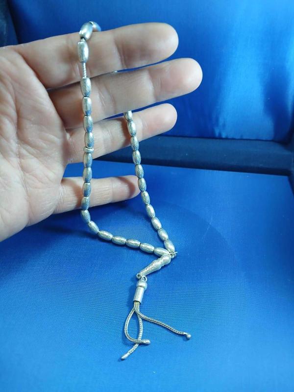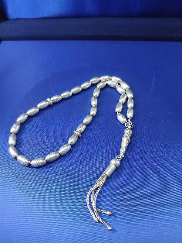 GÜMÜŞ TESBİH, BÜYÜK BİLEK BOY 22,33 GR ( +-1 GR ) 8,5mm*2,5 mm ÖLÇÜ 26 CM BOY