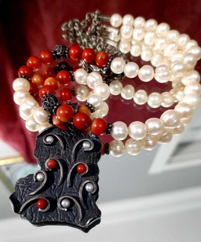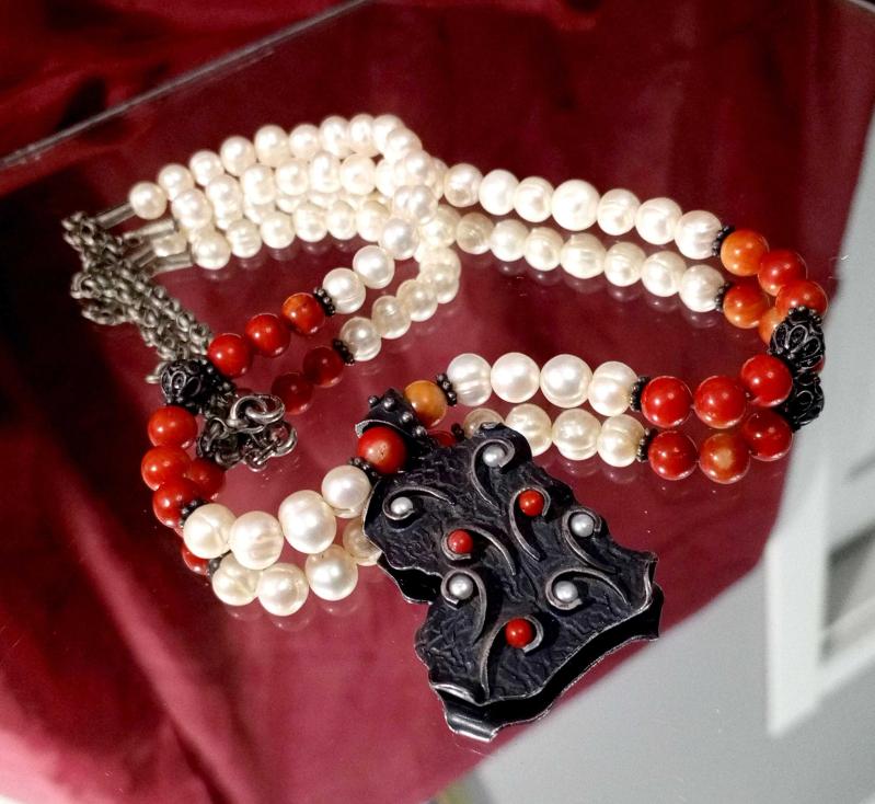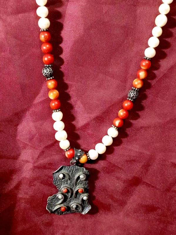 GÜMÜŞ UÇ'LU GÜMÜŞ APARAT'LI İNCİ KOLYE KOLYE UCUNDA MERCAN DETAYLAR MEVCUT. DİKKAT ZİNCİR GÜMÜŞ DEĞİL başlıklı antika/koleksiyon objesinin menşei belirtilmemiştir. Objenin ait olduğu dönem bilinmeketedir.