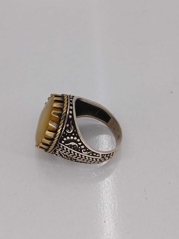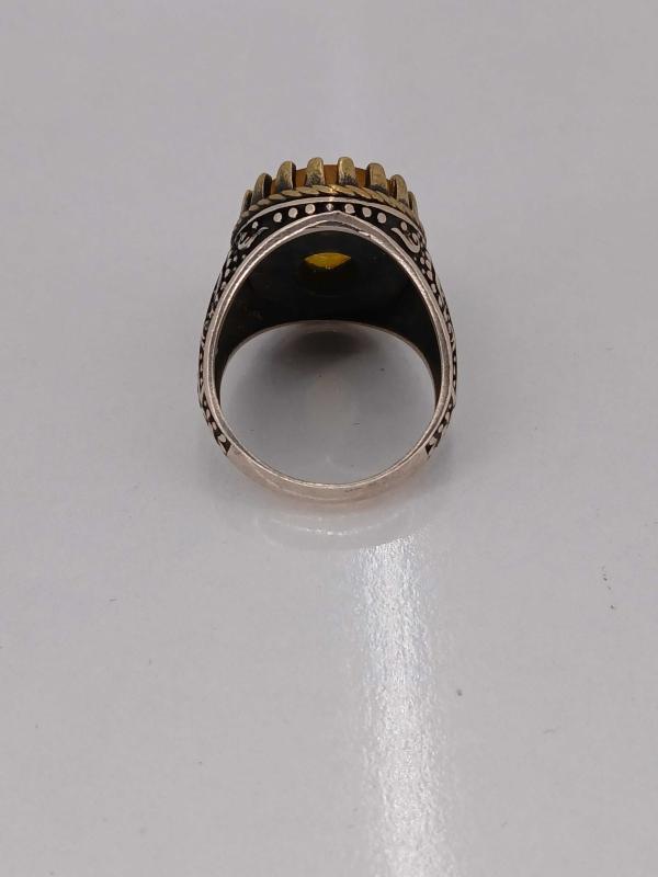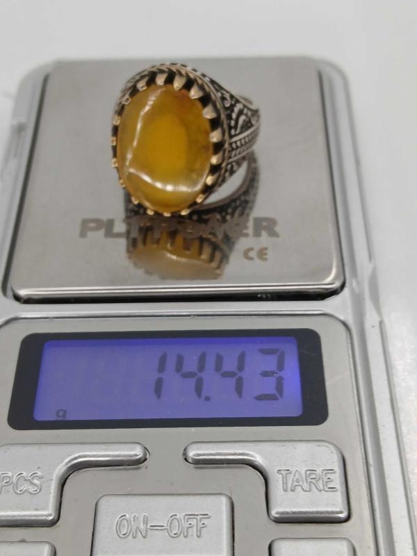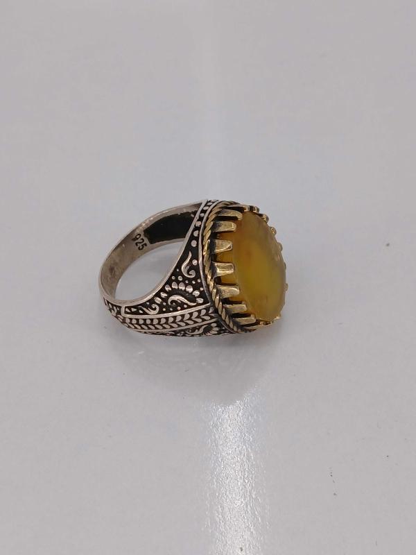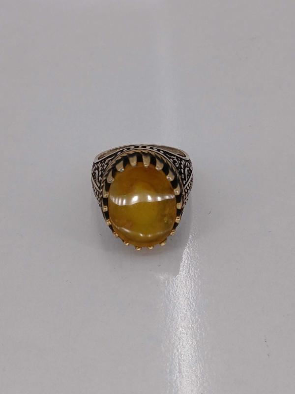 14,00 GR ( +- 1 GR ) YÜZÜK ÖLÇÜSÜ 22,50 GÜMÜŞ YÜZÜK, DAMLA KEHRİBAR TAŞLI