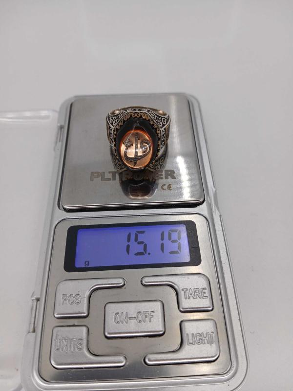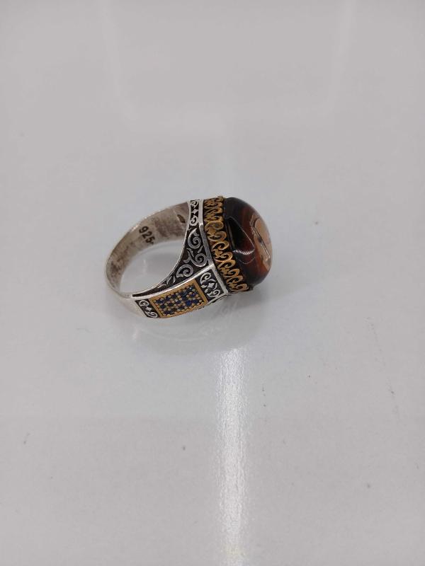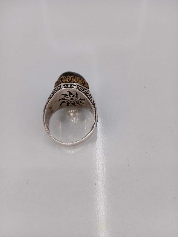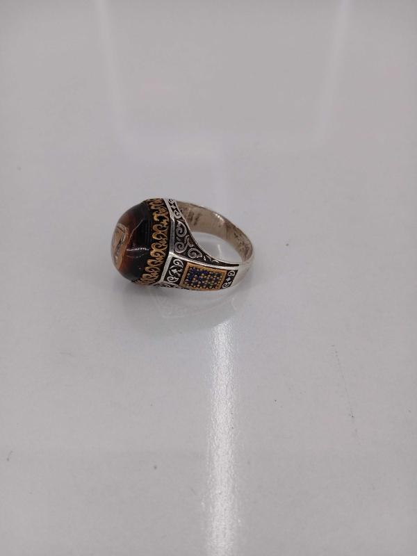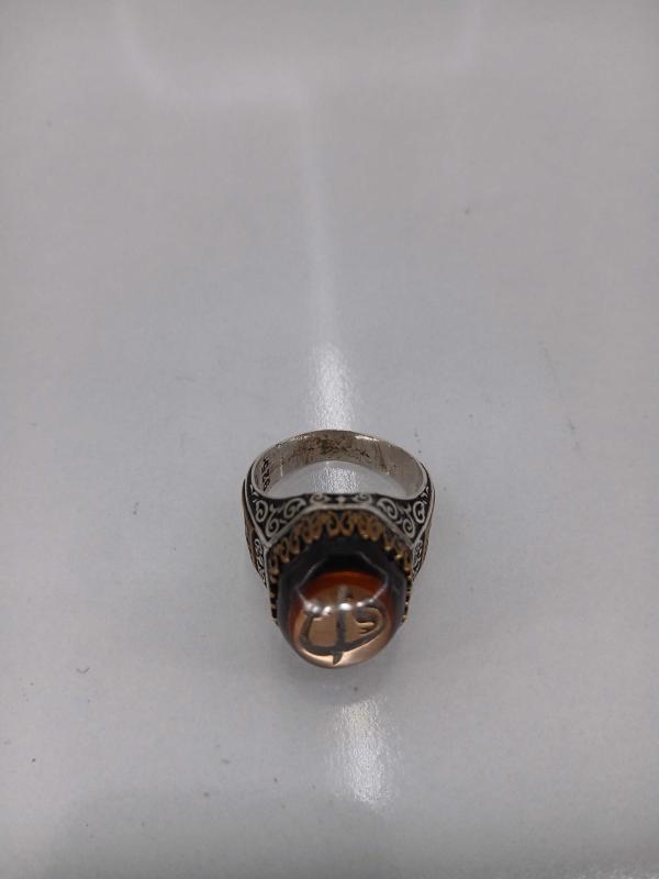 YÜZÜK ÖLÇÜSÜ 24,50 15,19 GR ( + - 1 GR ) GÜMÜŞ YÜZÜK, ELİF VE VAV HARFLİ, KEHRİBAR TAŞLI, OSMANLI TARZI KALEM İŞÇİLİKLİ