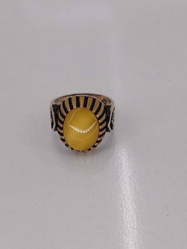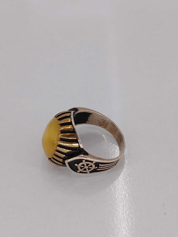 9,23 GR ( +- 1 GR ) YÜZÜK ÖLÇÜSÜ 23 GÜMÜŞ YÜZÜK, KEHRİBAR TAŞLI
