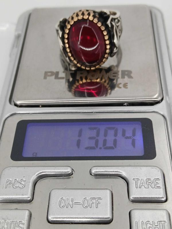 13,04 GR ( +- 1 GR ) YÜZÜK ÖLÇÜSÜ 28 GÜMÜŞ YÜZÜK, KIRMIZI ZİRKON TAŞLI