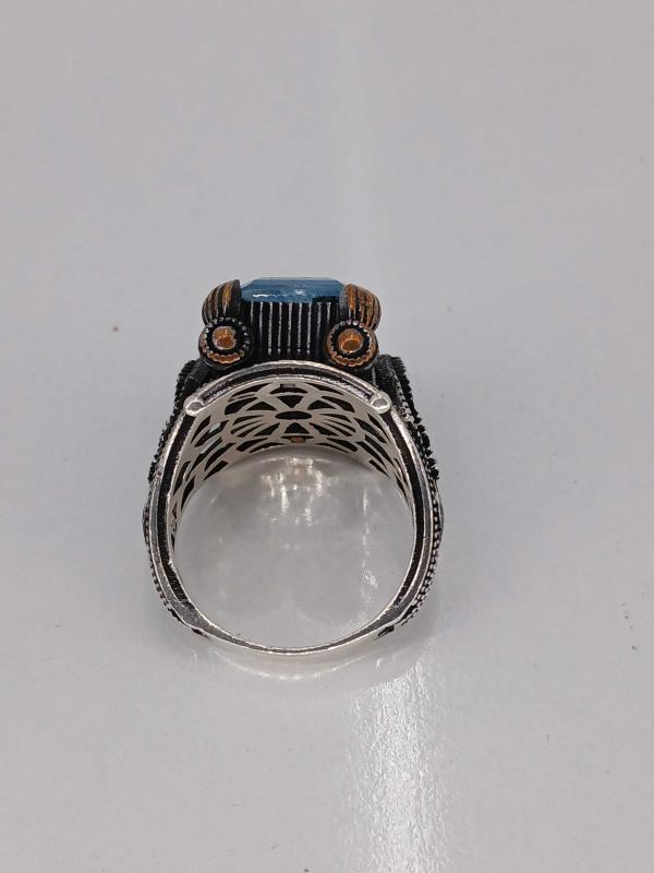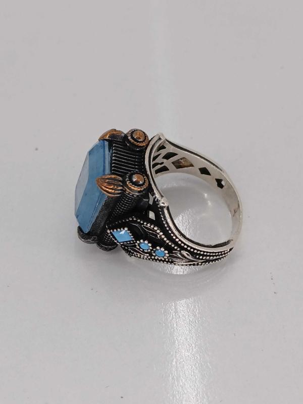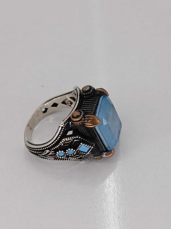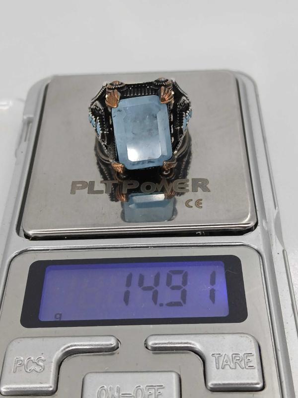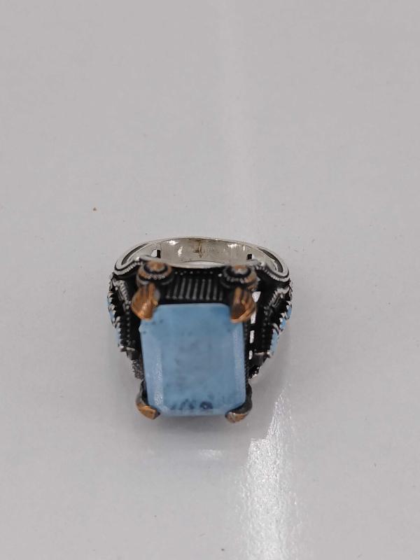14,91 GR ( +- 1 GR ) YÜZÜK ÖLÇÜSÜ 22,50 GÜMÜŞ YÜZÜK, PARAİBA TAŞLI