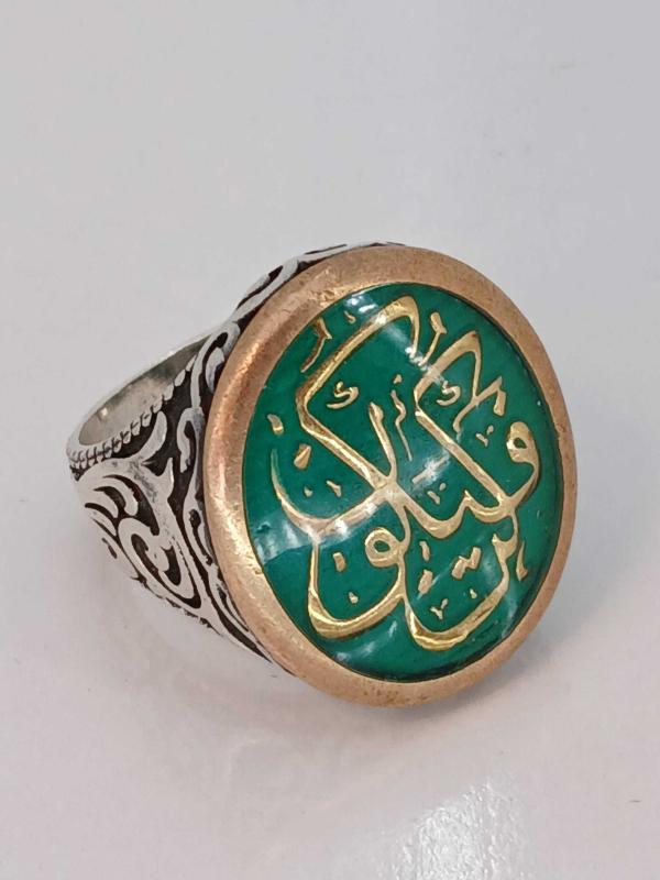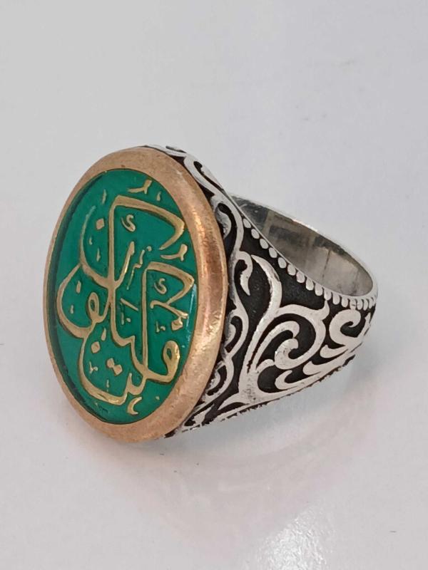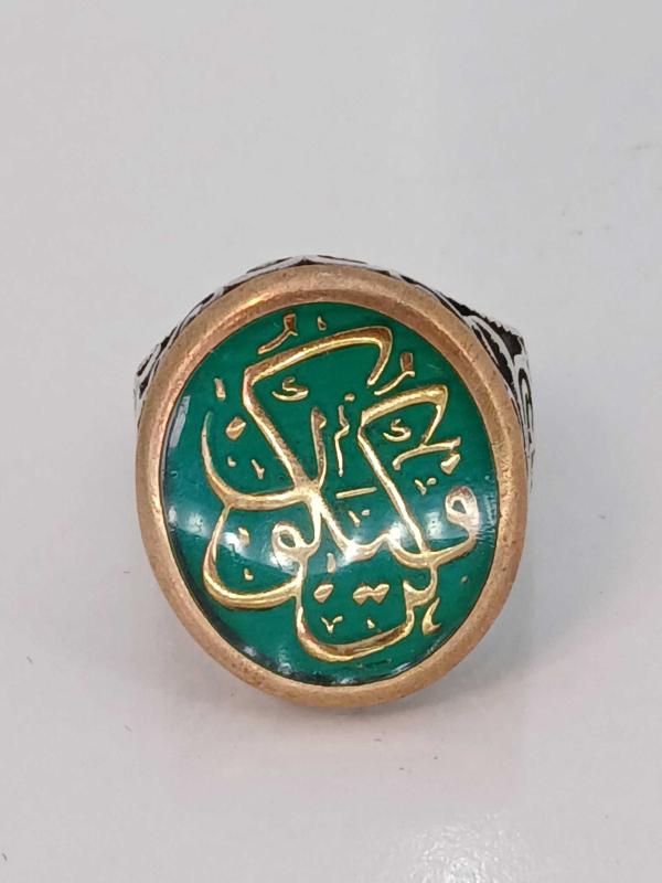 GÜMÜŞ YÜZÜK, YEŞİL AKİK TAŞLI, YEŞİL MİNE ÜZERİN HAT VE ÇERÇEVE başlıklı antika/koleksiyon objesi Türkiye menşe’lidir. 2000 ve sonrası dönemine aittir.