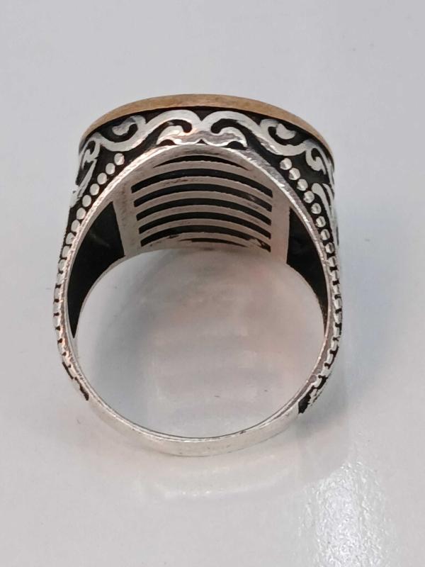 20,24 GR ( +- 1 GR ) YÜZÜK ÖLÇÜSÜ 26,50 GÜMÜŞ YÜZÜK, YEŞİL AKİK TAŞLI, YEŞİL MİNE ÜZERİN HAT VE ÇERÇEVE