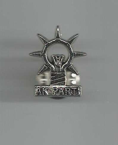 GÜMÜŞİ RENKTE AMPUL FORMUNDA AKPARTİ ROZETİ... başlıklı antika/koleksiyon objesi Türkiye menşe’lidir. 2000 ve sonrası dönemine aittir.
