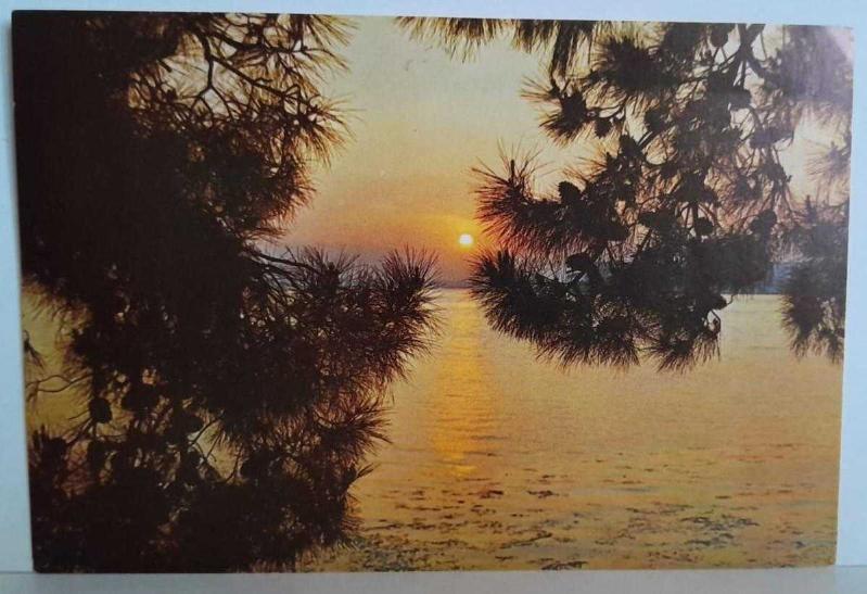 GÜNBATIMINDA DENİZ VE DİKEN YAPRAKLI AĞAÇLAR KARTPOSTALI,ARKASINA YAZILMIŞ,RENKLİ, 11 X 15 CM EBADINDA, en son 8 ay önce güncellenmiştir.