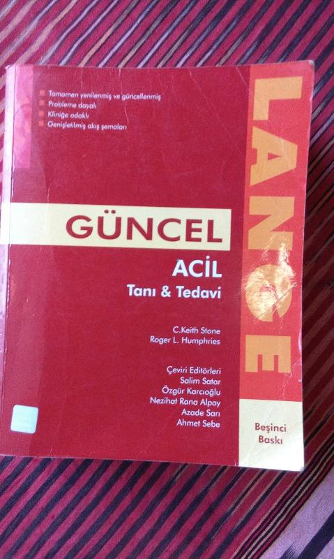GÜNCEL ACİL Tanı & Tedavi [5.Baskı], C. Keith Stone - Roger L. Humphries tarafından kaleme alınmıştır. Kitap 2006 yılında NOBEL KİTABEVİ tarafından [ANKARA] yayınlanmıştır. Bu baskının çevirisi Salim Satar-Özgür Karcıoğlu tarafından yapılmıştır. 1.169 sayfadır. GÜNCEL ACİL Tanı & Tedavi [5.Baskı] adlı eser Türkçe dilindedir.