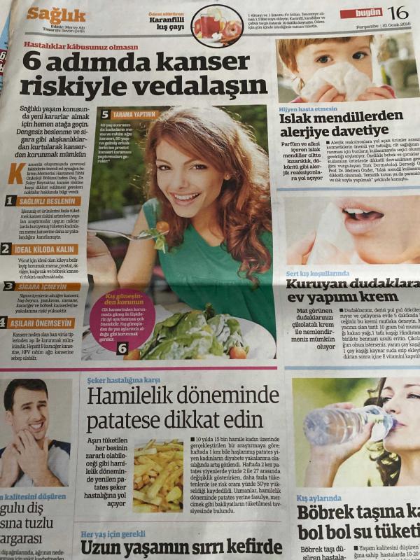 GÜNCEL GAZETESİ DOĞUM GÜNÜ HEDİYESİ - 21 OCAK 2016 - Sidem gül 1 milyon 174 bin 428 öğrenci arasından birinci oldu-uzay atlayışına ilk meydan okuma-Mehmet özaydın-Muhittin Şahin-Mehmet özcan-Ömer erdem-Ambargo sonrası İran-18 yaşından küçüklerin oynaması yasak oyunlar-Ortaköy viyadüğü bakıma alınacaktır-Felix Baumgartner-Begüm Doğanay Süülker-İsmail atatekin-6 adımda kanser riski ile vedalaşın-islak mendillerden alerjiye davetiye-kuruyan dudaklara ev yapımı krem-hamilelik döneminde patatese dikkat edin dire dolgulu diş ağrısına tuzlu su gargarası-böbrek taşına karşı bol bol su tüketin-uzun yaşamın sırrı Kefirde-sayfa sayısı iki adlı eser Türkçe dilindedir. Eserin içeriğinde Türkçe dilinde bölümlere de yer verilmektedir.