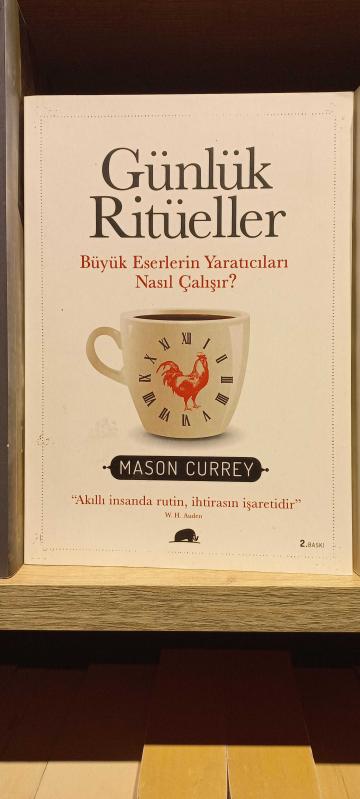 GÜNLÜK RİTÜELLER BÜYÜK ESERLERİN YARATICILARI NASIL ÇALIŞIR? - MASON CURREY - KOLEKTİF YAYINLARI 2. BASKI 2014, MASON CURREY tarafından kaleme alınmıştır. Kitap 2014 yılında KOLEKTİF YAYINLARI tarafından yayınlanmıştır. Bu baskının çevirisi TÜLİN ER, SEVİNÇ KAYIR tarafından yapılmıştır. 234 sayfadır. GÜNLÜK RİTÜELLER BÜYÜK ESERLERİN YARATICILARI NASIL ÇALIŞIR? - MASON CURREY - KOLEKTİF YAYINLARI 2. BASKI 2014 adlı eser Türkçe dilindedir.