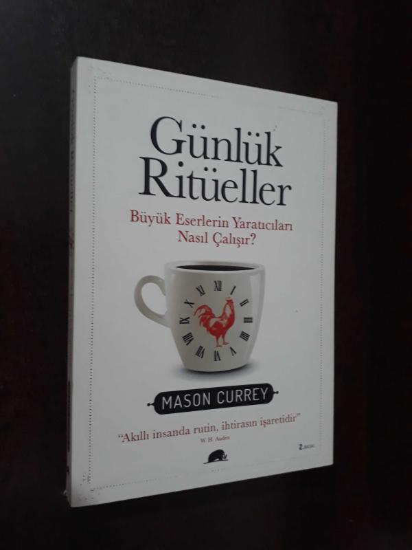 GÜNLÜK RİTÜELLER BÜYÜK ESERLERİN YARATICILARI NASIL ÇALIŞIR?, MASON CURREY tarafından kaleme alınmıştır. Kitap 2014 yılında KOLEKTİF YAYINLARI tarafından yayınlanmıştır. Bu baskının çevirisi TÜLİN ER, SEVİNÇ KAYIR tarafından yapılmıştır. 234 sayfadır. GÜNLÜK RİTÜELLER BÜYÜK ESERLERİN YARATICILARI NASIL ÇALIŞIR? adlı eser Türkçe dilindedir.